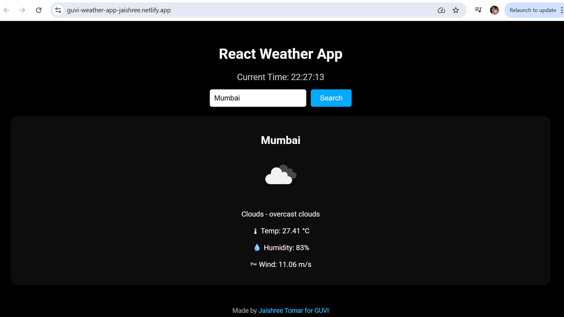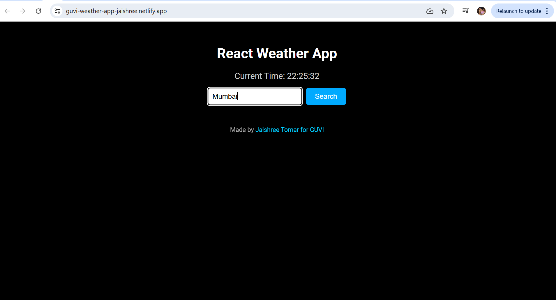 All of this is rendered dynamically using React and updated every time the user searches for a new city.